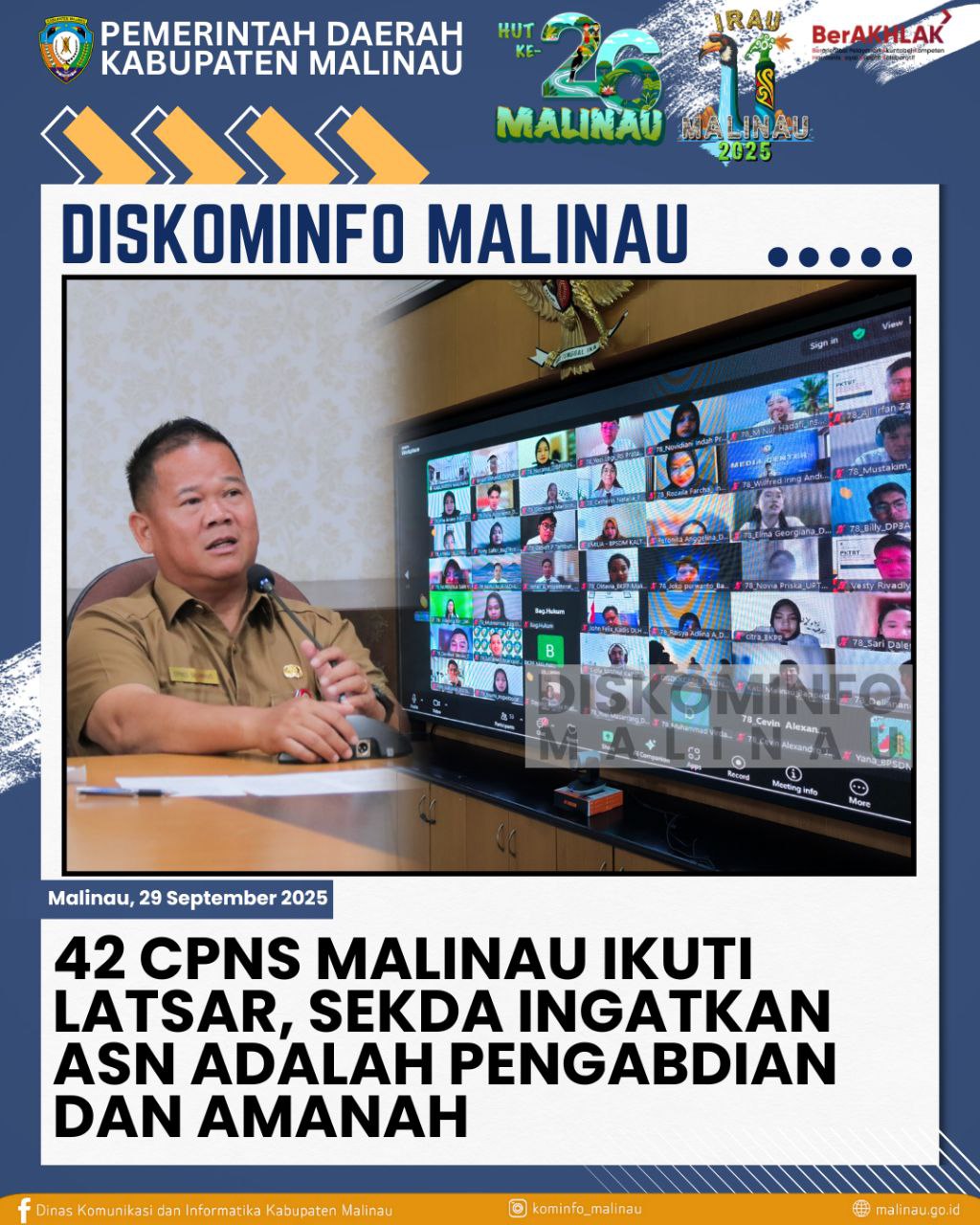 01 Oktober 2025Malinau- Sekda Malinau, Dr. Ernes Silvanus, S.Pi., M.M., M.H., menghadiri pembukaan Pelatihan Dasar (Latsar) Calon Pegawai Negeri Sipil (CPNS) Angkatan 78 Kelas Kabupaten Malinau di lingkungan Pemerintah Provinsi Kalimantan Utara, Senin (29/9/2025).