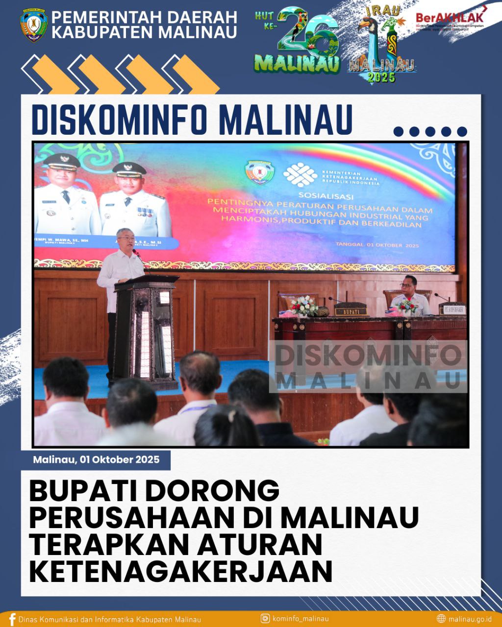 Saat ini, tercatat ada 56 perusahaan di Malinau. Lebih dari separuh di antaranya telah memiliki peraturan perusahaan, sementara sebagian lainnya masih dalam proses penyusunan sesuai amanat Pasal 103 UU Ketenagakerjaan yang mewajibkan perusahaan dengan lebih dari 10 karyawan untuk memiliki aturan kerja.