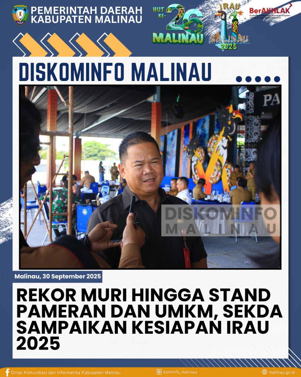 Malinau- Sekda Malinau, Dr. Ernes Silvanus, S.Pi., M.M., M.H., menegaskan bahwa persiapan pelaksanaan Festival Budaya IRAU ke- 11 sekaligus perayaan HUT ke-26 Kabupaten Malinau 2025 sudah hampir rampung.